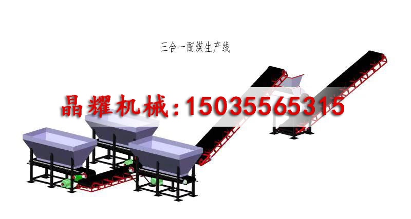 簡(jiǎn)單的機(jī)械化配煤生產(chǎn)線的工藝流程:用裝載機(jī)將不同性質(zhì)的單種原料煤裝入不同的貯煤斗,通過(guò)圓盤給料機(jī)或箱式給煤機(jī)出煤閘門的調(diào)節(jié),控制各單種原料煤出煤量的大小,不同的煤經(jīng)滾筒篩或振動(dòng)篩等篩分設(shè)備進(jìn)行篩分和混配,篩下物成為動(dòng)力配煤,篩上物經(jīng)粉碎后摻入動(dòng)力配煤中,然后作為成品貯存或外運(yùn)。一般中小型配煤場(chǎng)常用這種簡(jiǎn)單的工藝流程。